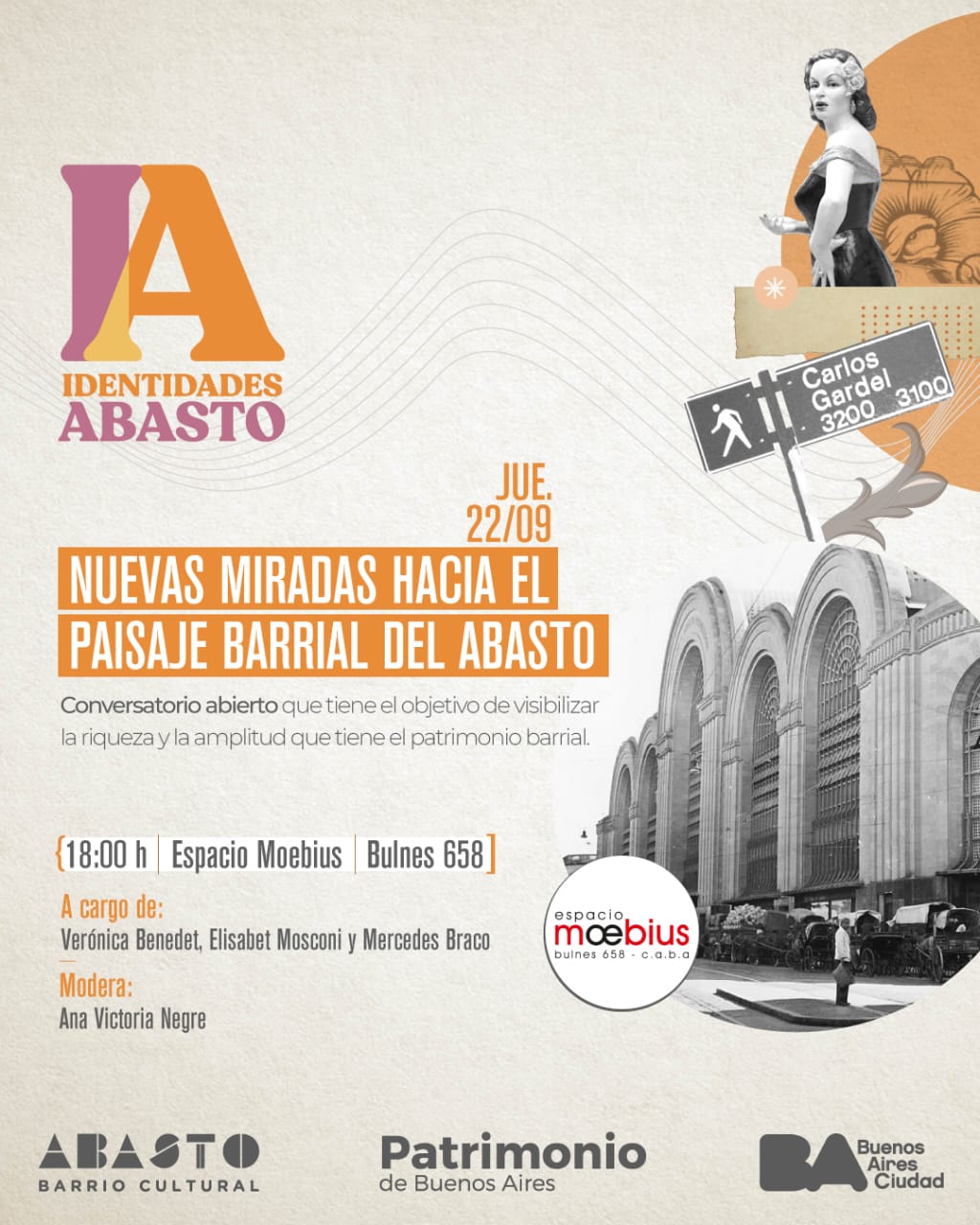 El próximo jueves 22 de septiembre nuestra compañera Veronica Benedet dará una charla bajo el título «Estrategias colaborativas para la gestión del Patrimonio Residencial del S. XX. Experiencia en el Paisaje Barrial del Abasto» en el marco de «IDENTIDADES ABASTO 2022» organizada por el Miniesterio de Cultura de la Ciudad de Buenos Aires en el barrio cultural Abasto. Junto a ella participarán Elisabet Mosconi y Mercedes González Bracco de las ongs «Proteger Abasto» y «Patrimonio Almagro-Boedo». Ana Victoria Negre será la moderadora del debate final. La cita es a las 18hs en el Espacio Moebius ubicado en Bulnes 658 en el Barrio del Abasto de la Ciudad Autónoma de Buenos Aires.