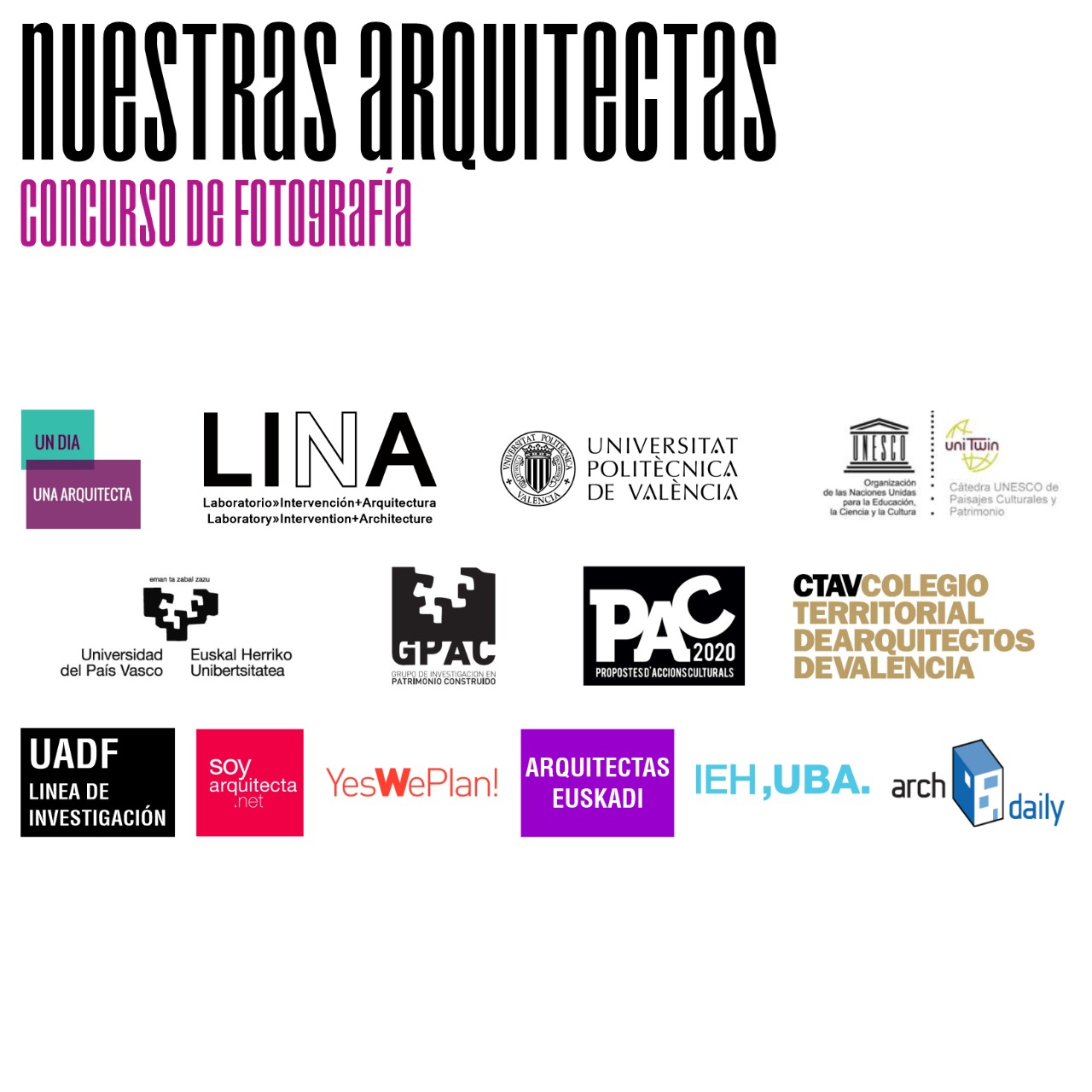 El colectivo Nuestras Arquitectas ha organizado un Concurso de Internacional de Fotografías de obras de arquitectas junto a @Ines Moisset (Un día / una arquitecta), Carolina Quiroga (Lina Plataforma), Eva Alvarez (YesWePlan!) y Veronica Benedet (@Arquitectas Euskadi y Patrimonio SXX).