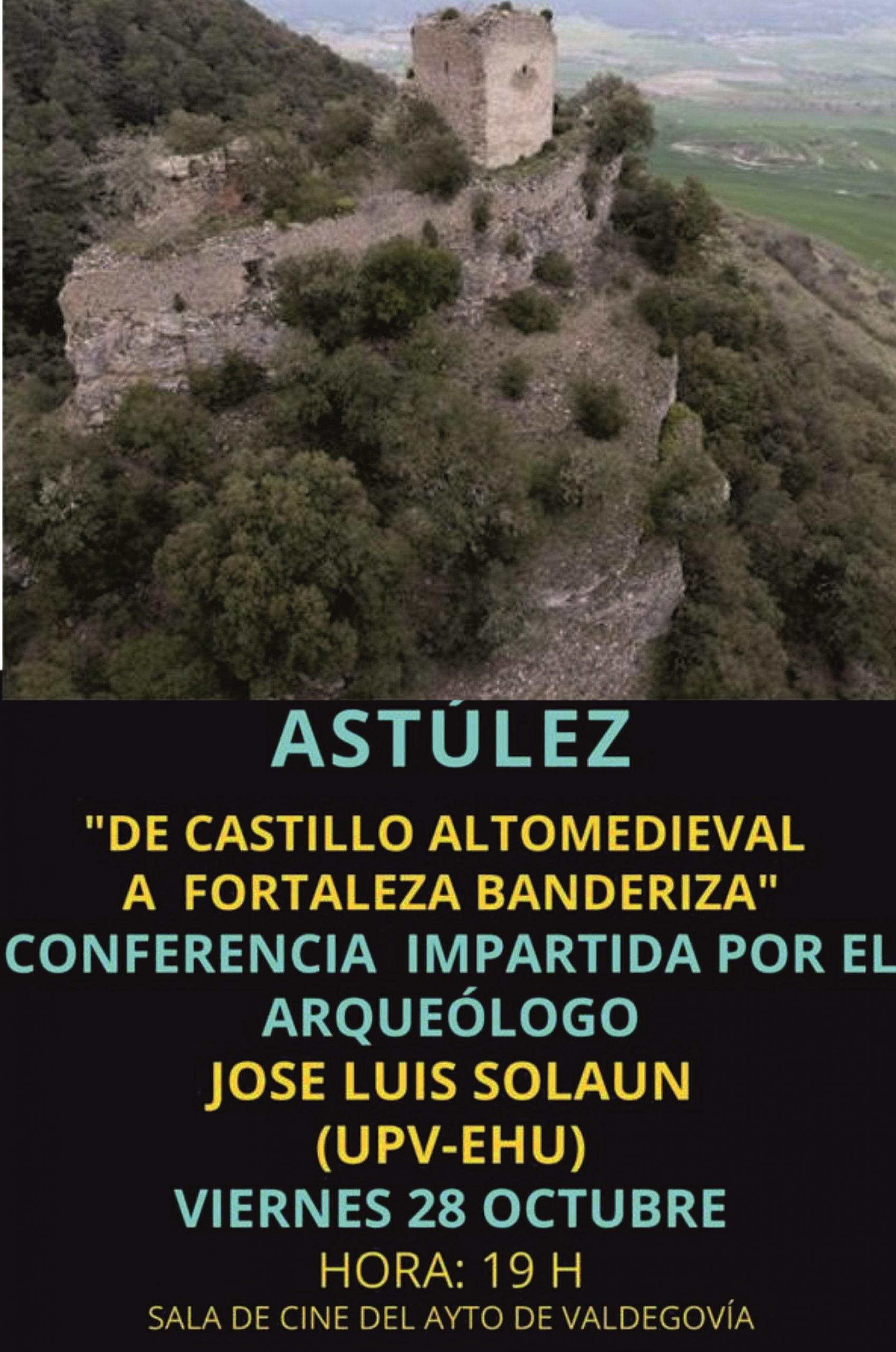 El próximo viernes 28 de octubre nuestro compañero el Dr. José Luis Solaun ofrecerá una conferencia “Astúlez. De castillo altomedieval a fortaleza banderiza”. La cita es a las 19hs en la sala de cine del Ayuntamineto de Valdegovia.