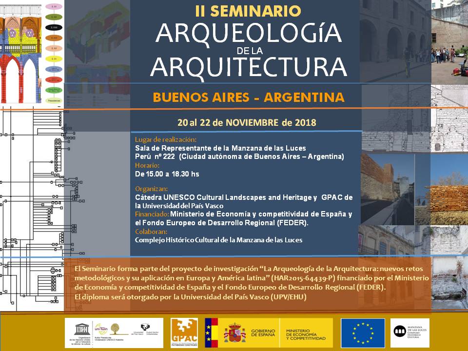 Del 20 al 22 de noviembre se realizará en Buenos Aires el 2º seminario “Arqueología de la Arquitectura: una metodología para el conocimiento, protección y puesta en valor del patrimonio construido”.