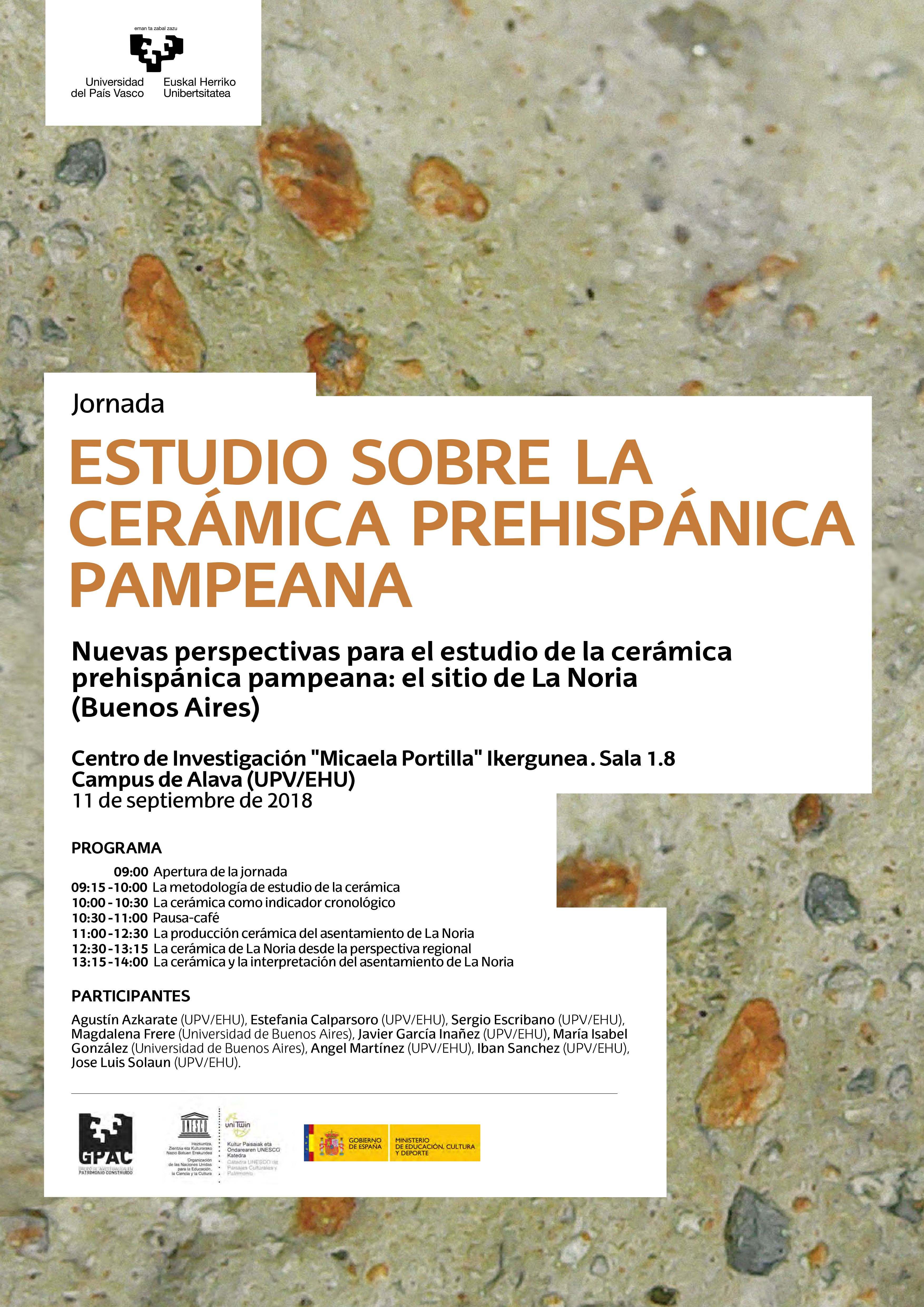Los invitamos a participar de la Jornada “Nuevas perspectivas para el estudio de la cerámica prehispánica pampeana: el sitio de La Noria (Buenos Aires)” que se llevará a cabo en el 11 de septiembre en el Centro de Investigación “Micaela Portilla” Ikergunea en la sala 1.8 en el Campus de Alava (UPV/EHU). El horario es de 9 a 14hs.
