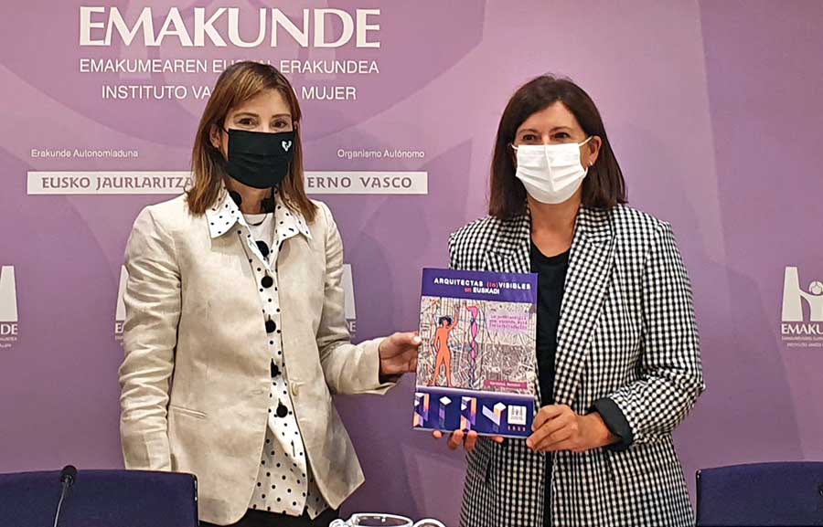 Dra. arqta. Veronica Benedet y Izaskun Landaida Larizgoitia , directora del Instituto Vasco de la Mujer (EMAKUNDE) en la presentación de la investigación «Arquitectas (in)VISIBLES en Euskadi. La problemática que esconde esta invisibilidad»