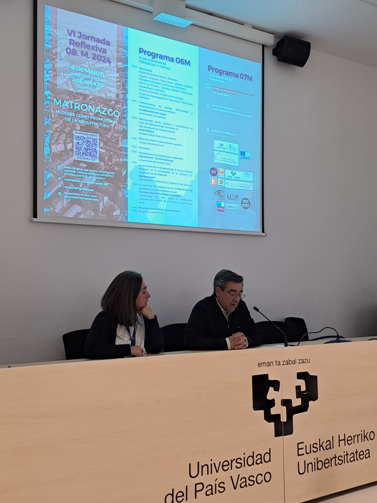 El 6 y 7 de marzo pasado se celebró la VI Jornada Reflexiva 8M “Matronazgo. Mujeres como promotoras de la arquitectura”. Desde 2019 venimos apoyando estas jornadas organizadas por la plataforma ARQSarean (plataforma feminista de divulgación y visibilización de la Arquitectura, Urbanismo y Patrimonio). Este año, y por segunda vez, con el apoyo desde Argentina, de la Cátedra UNESCO en Patrimonio Arqueológico de la Universidad Nacional del Centro de la Provincia de Buenos Aires (UNICEN). Nos acompañaron también en esta 6º edición las siguientes instituciones: Patrimonia INCUAPA (UNICEN), Observatorio de Patrimonio Cultural (UNICEN), Ondare Irekia/Patrimonio Abierto, Patrimonio Siglo XX y los colectivos feministas “Nuestras Arquitectas”, “Programa GADU (FADU-UBA)”, “Un día, Una Arquitecta” y la plataforma “LINA” . Hemos contamos con la financiación de estas jornadas de la Facultad de Letras de la UPV/EHU