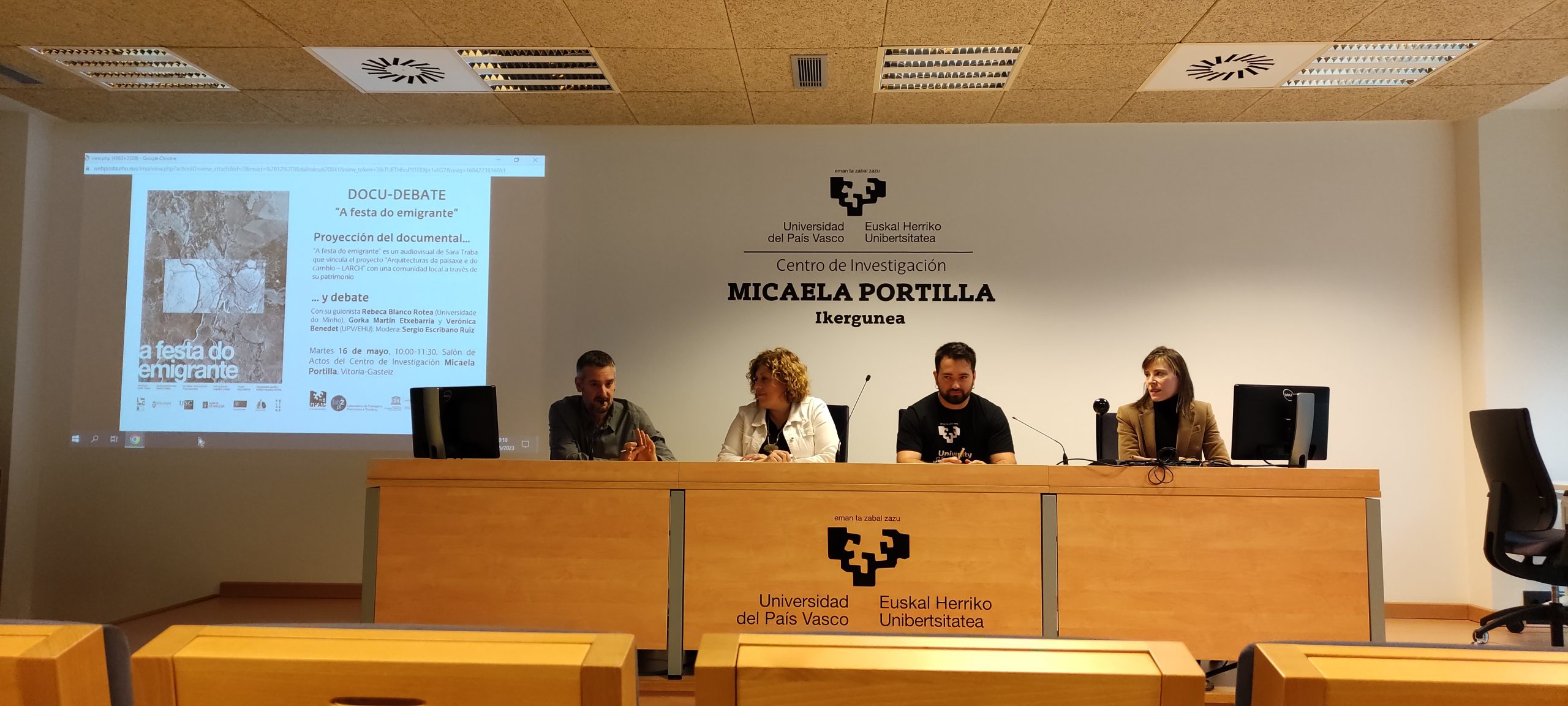 Ayer, martes 16 de mayo, Rebeca Blanco Rotea de la Universidadde do Minho presentó en el Salón de Actos de nuestro Centro de Investigación Micaela Portilla el documental «A festa do emigrante» realizado por la documentalista Sara Traba. Este audiovisual está vinculado al proyecto «Arquitecturas da Paisaxe e do cambio- LARCH» que dirige Rebeca Blanco, con la comunidad local de Extremo (Portugal) a través de su patrimonio.