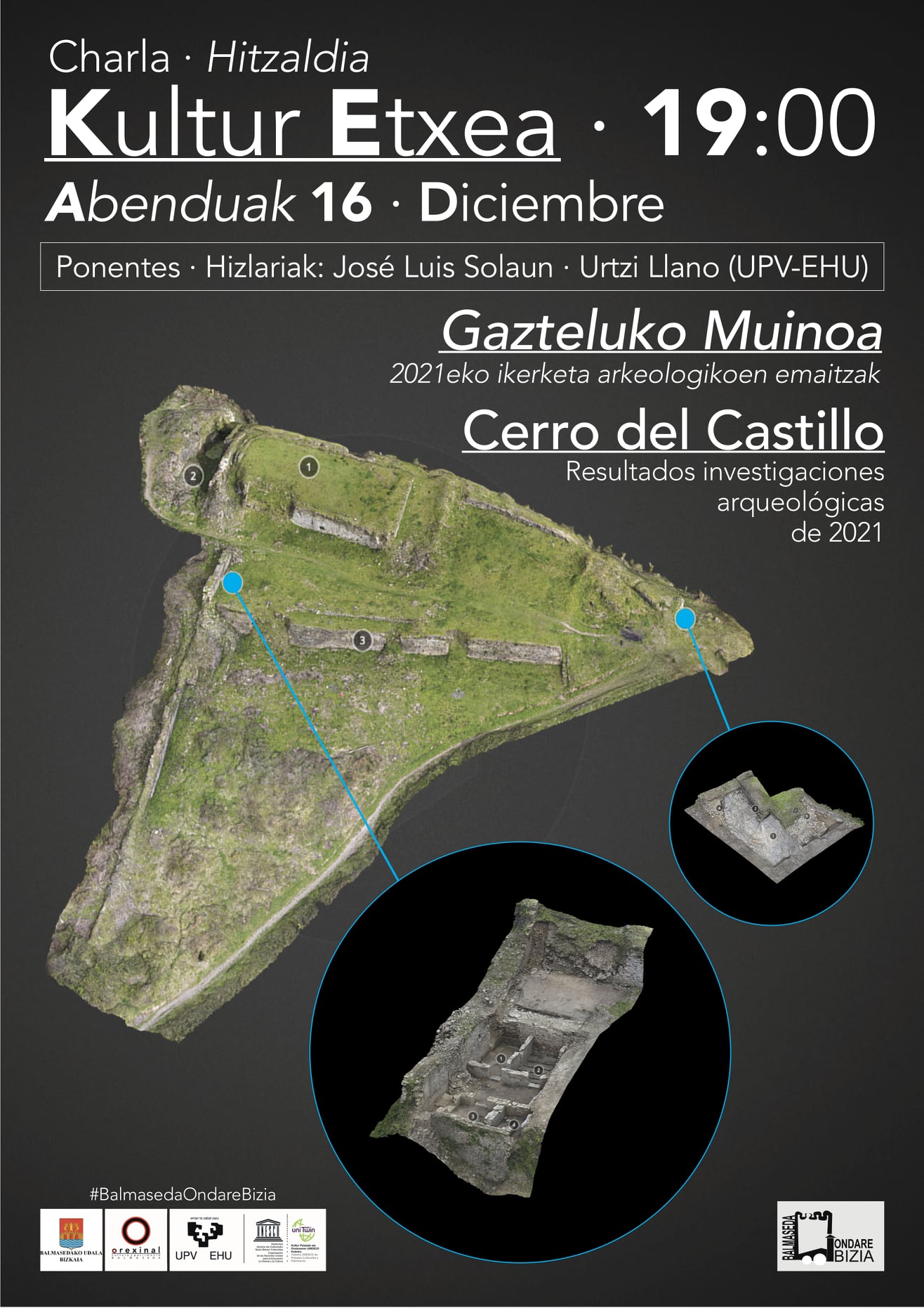 Hoy, jueves 16 de Diciembre, nuestro compañero de nuestro grupo y miembro de la cátedra UNESCO Paisajes Culturales y Patrimonio, Jose Luis Solaun presentará en Balmaseda las últimas novedades, avances y hallazgos de las excavaciones arqueológicas como parte del Proyecto «OndareBizia» para la recuperación del Cerro del Castillo organizada conjuntamente con la asociación Orexinal y el Ayuntamiento de Balmaseda.